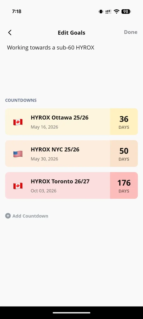 Most mainstream HYROX programs are app-based, built by full-time professional athletes for a global audience of thousands. They’re excellent — but they’re designed from the outside looking in. Hyper is different in three ways: it’s built by a busy tech professional who trains around a real work schedule, so the programming actually respects the demands of a full work week; it offers in-person coaching in Toronto, not just a screen; and the room is capped at 8 athletes, so you get a coach who actually knows your training history, your weaknesses, and what you need that day — not a generic plan pushed to every subscriber.