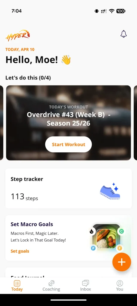 The Hyper phone app is where your training lives. Weekly non-repeating workouts delivered straight to your phone, every rep, weight, and run tracked in one place. No spreadsheets, no guesswork — just open it, hit your session, and go.